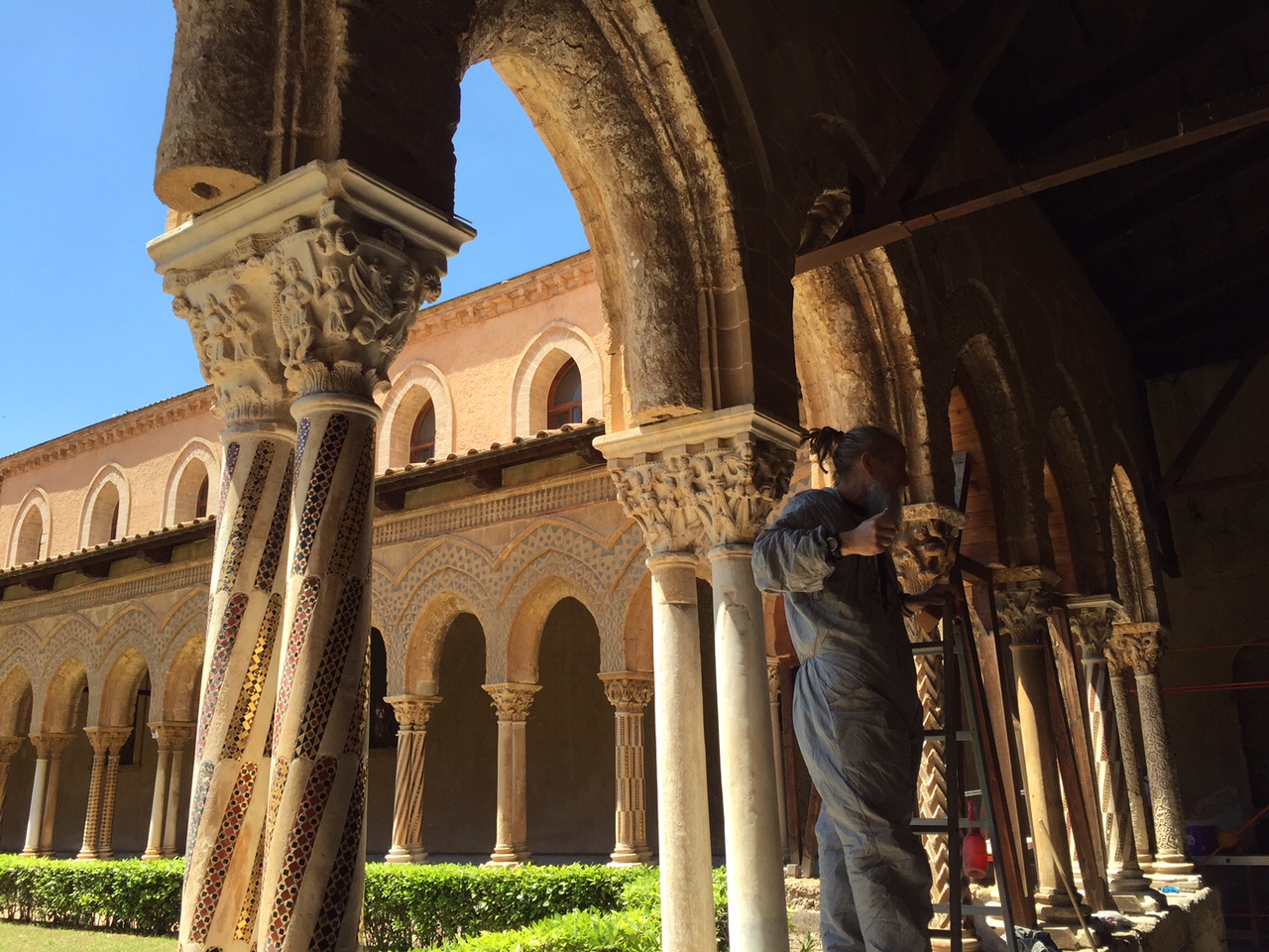 Più tardi, nello stesso giorno, ci siamo recati al Duomo dove abbiamo ritrovato alcune delle immagini storiche studiate. Abbiamo anche fatto una piccola incursione al Chiostro, dove un mastro restauratore molto disponibile ci ha spiegato come lavora un restauratore per garantire alle generazioni future di ammirare le splendide colonne del chiostro.